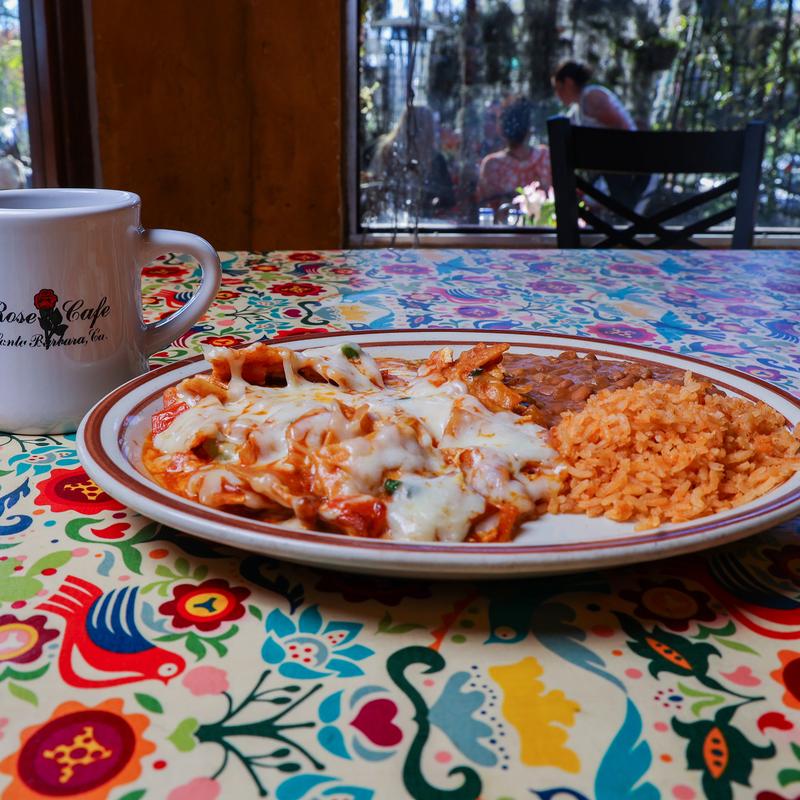 Cheese enchilada, taco dorado, and choice of chile relleno, tamale, or small bean tostada
